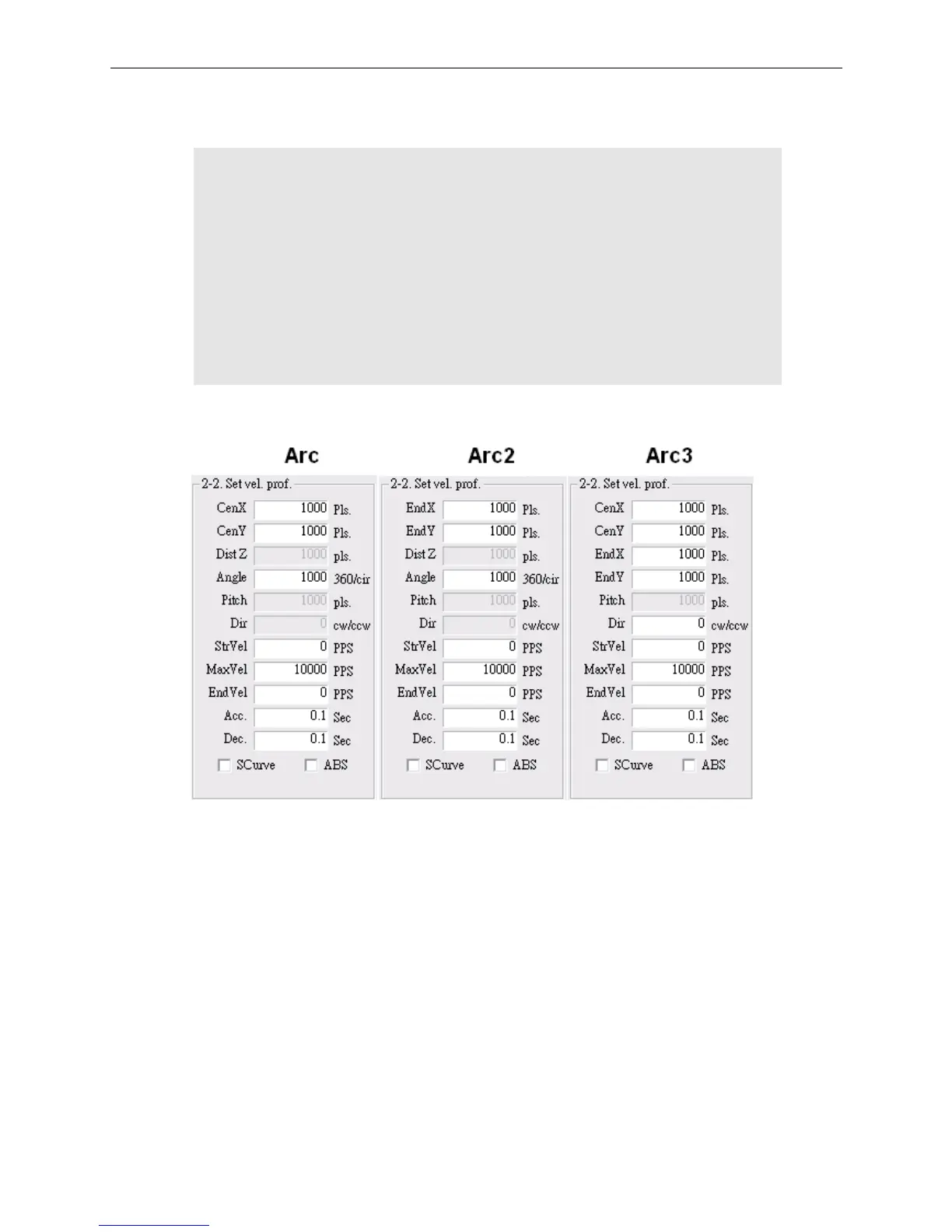 (16) Two-axis motion mode (Arc, Arc2, Arc3) and the settings