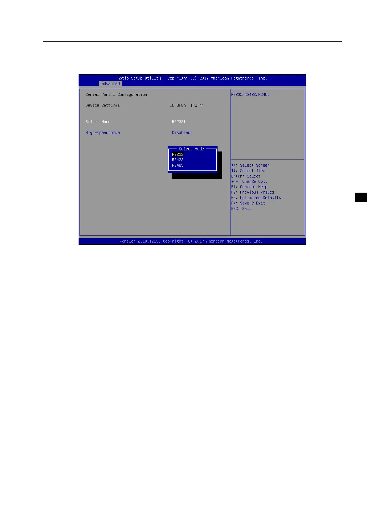 Click Select Mode and choose RS232 or RS422 or RS485 for COM type. The default COM setting is RS232.