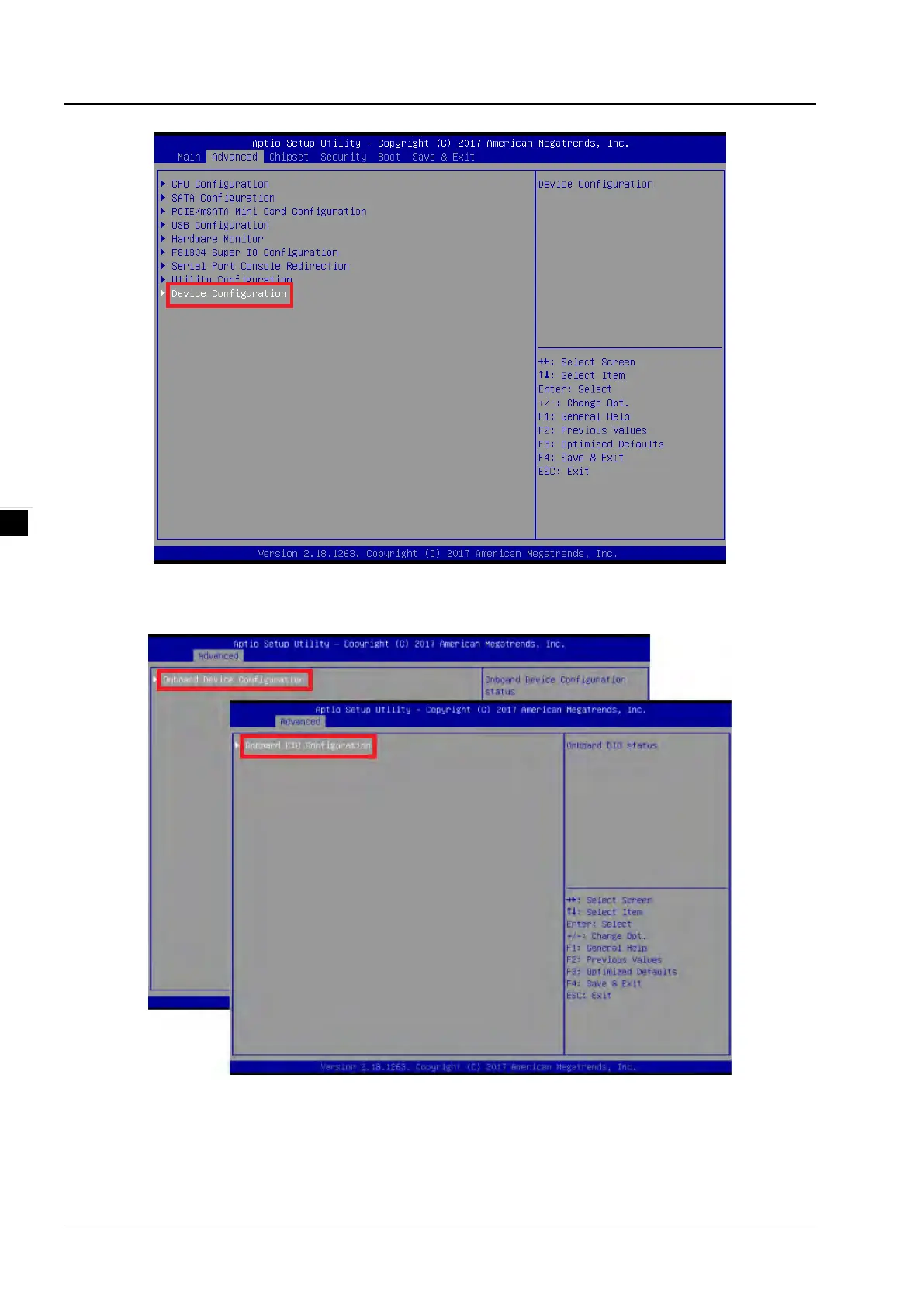 Continue to select Onboard Device Configuration, Onboard DIO Configuration.
