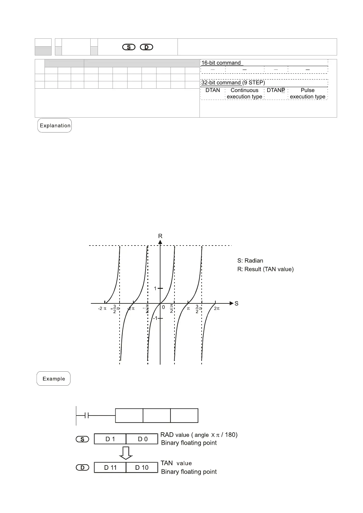 D0) in radians (RAD) will be stored in (D11, D10), with the content consisting of a