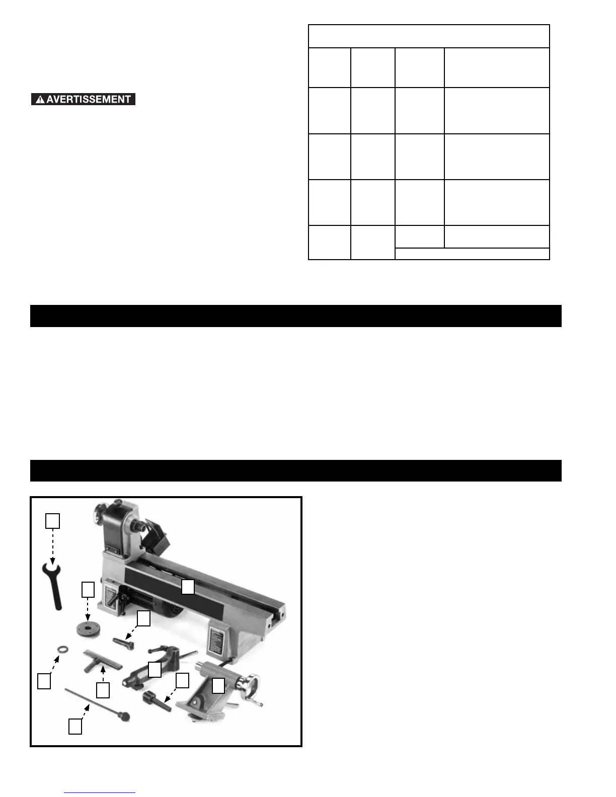 permet le tournage de pièces jusqu’à 25,4 cm (10 po) de diamètre au-dessus du banc et 15,2 cm (6 po) de diamètre