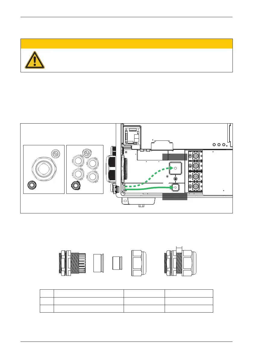 (1) 請依下表選用適合接地電纜直徑之防水接頭內部橡膠,將電纜穿過內部橡膠並