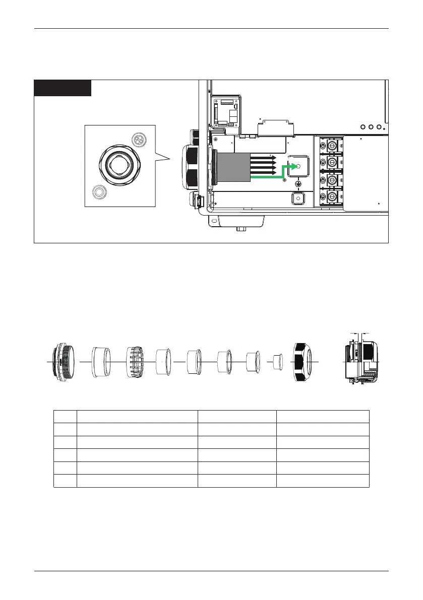(1) 請依下表選用適合接地電纜直徑之防水接頭內部橡膠,將電纜穿過內部橡膠並