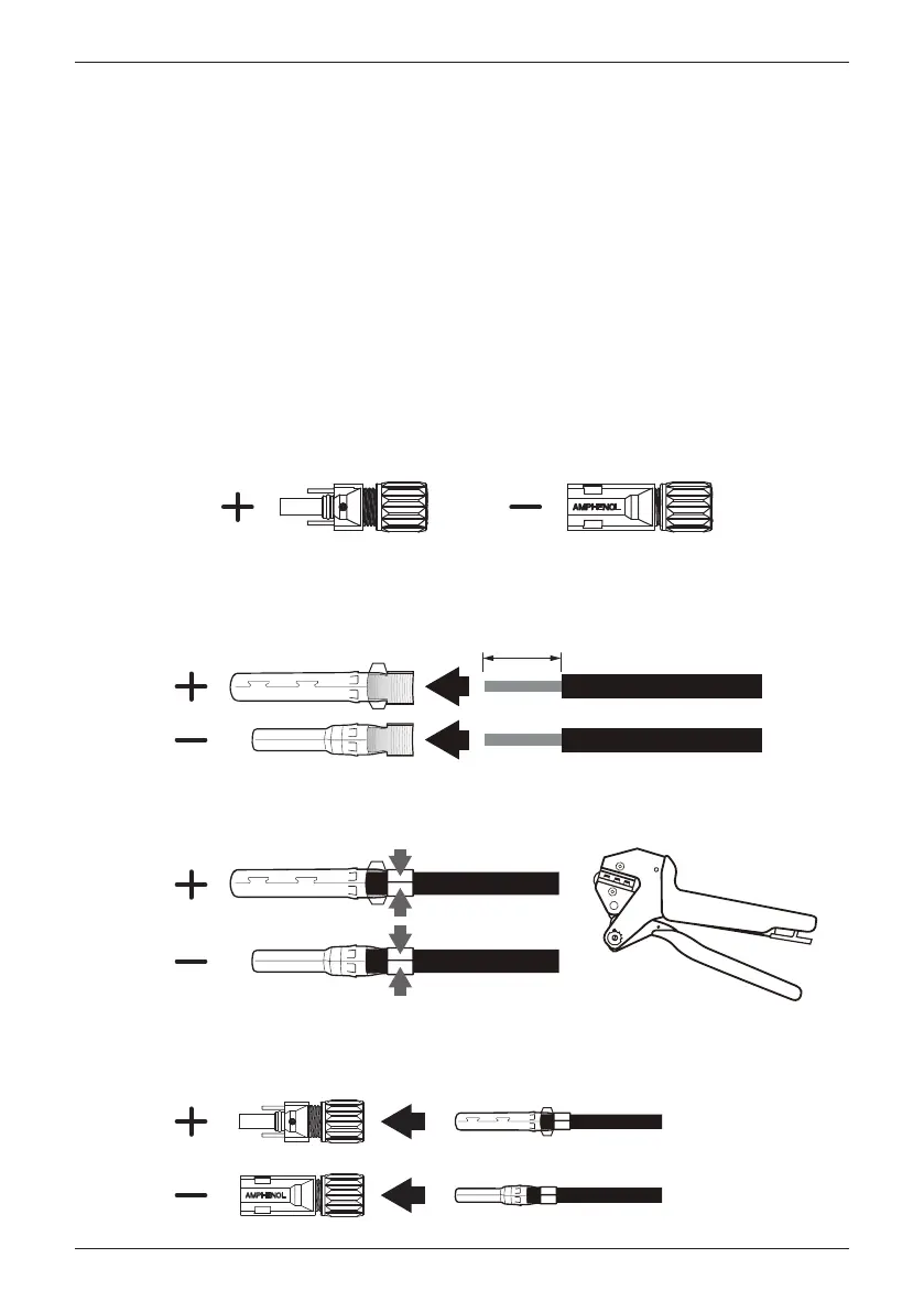 - 直流接頭適用4.0mm² ~ 6.0mm²之銅導線。請依所選用太陽能模組之規格要求,
