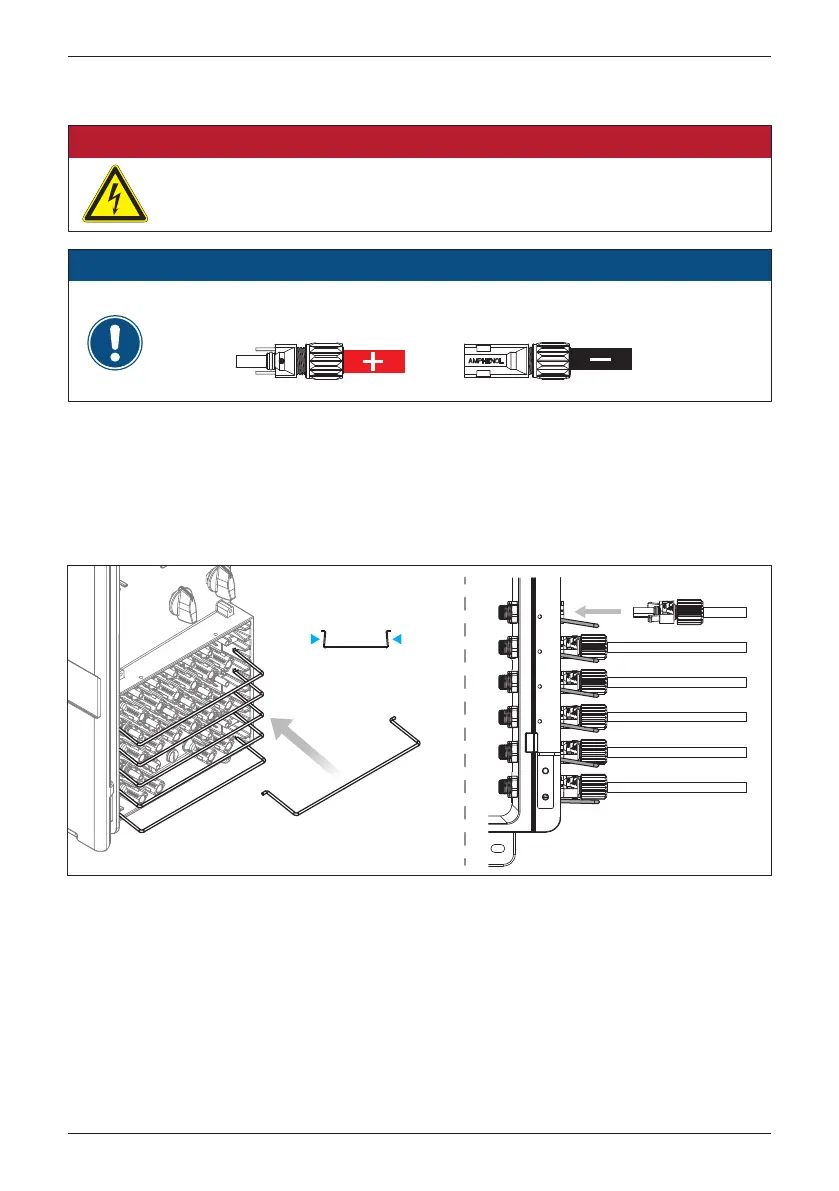 (3) 依照圖3-18依序將太陽能組串接於變流器上。務必確認同一最大功率追蹤之兩