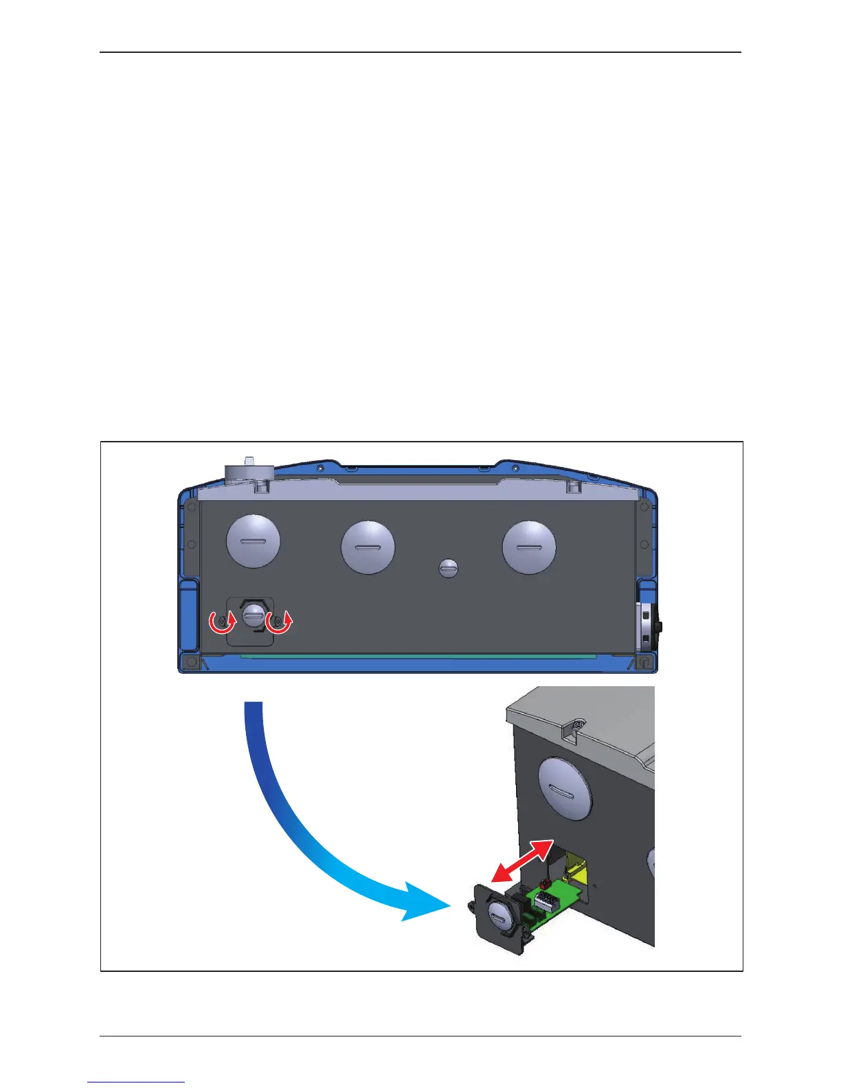 To access the communication module, loosen the two self-retaining screws to