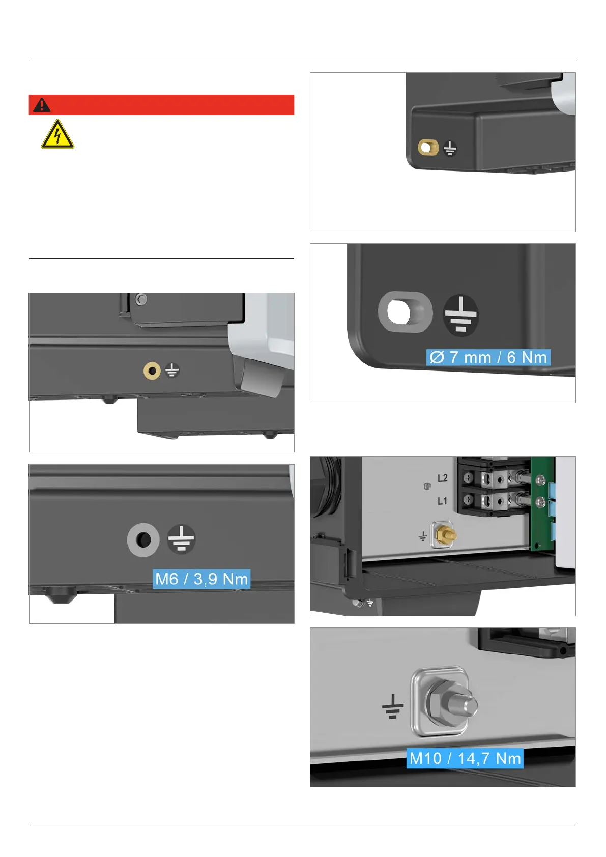 Fig. 5.15: Grounding connection at the left mounting hole