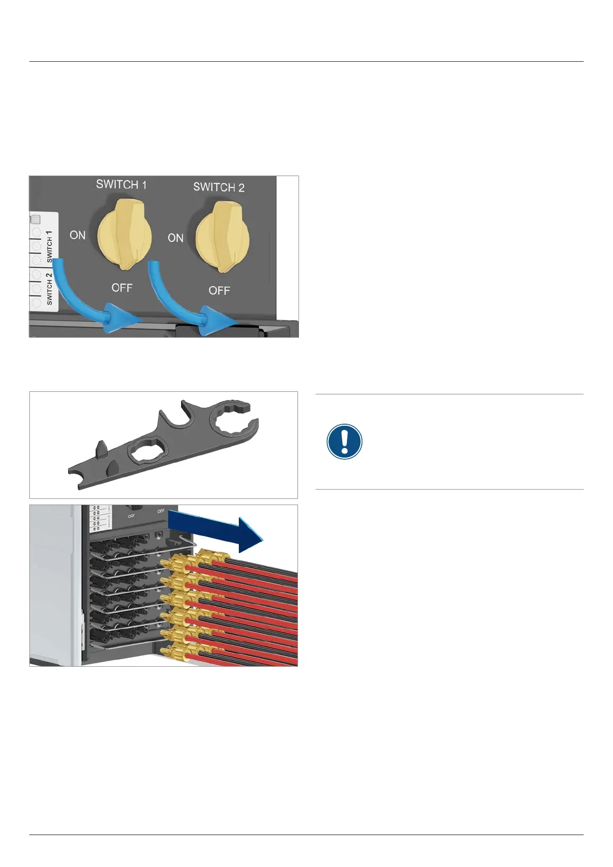 2. Turn both DC disconnectores to the OFF position.