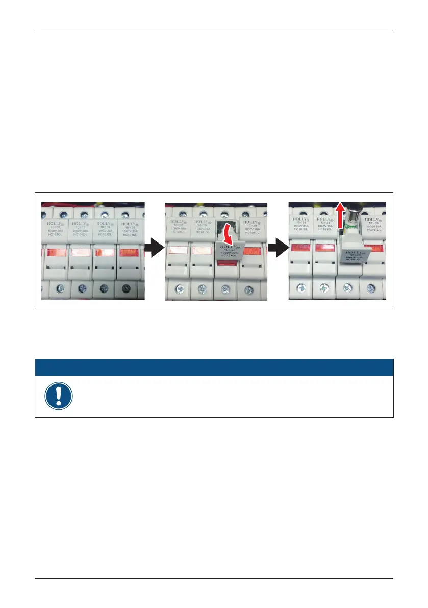 Use caution: Though the DC switches are off, the fuse holders are energized