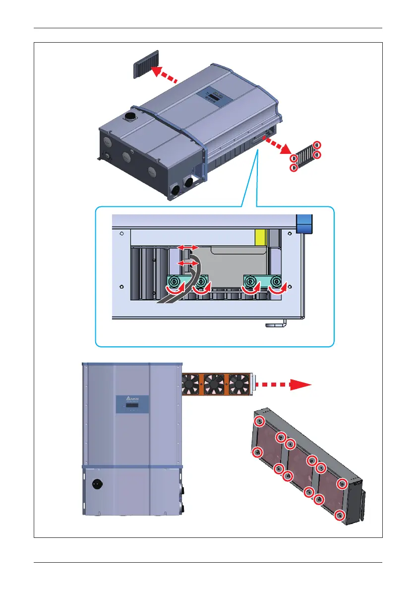 Figure 5-17: Disassembling fan tray from PM chassis (showing one side only)