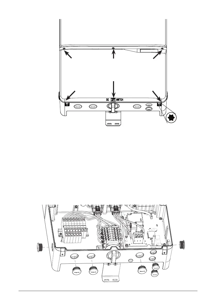 1. Place DC Disconnect switch in “OFF” position. Please note the cover cannot be