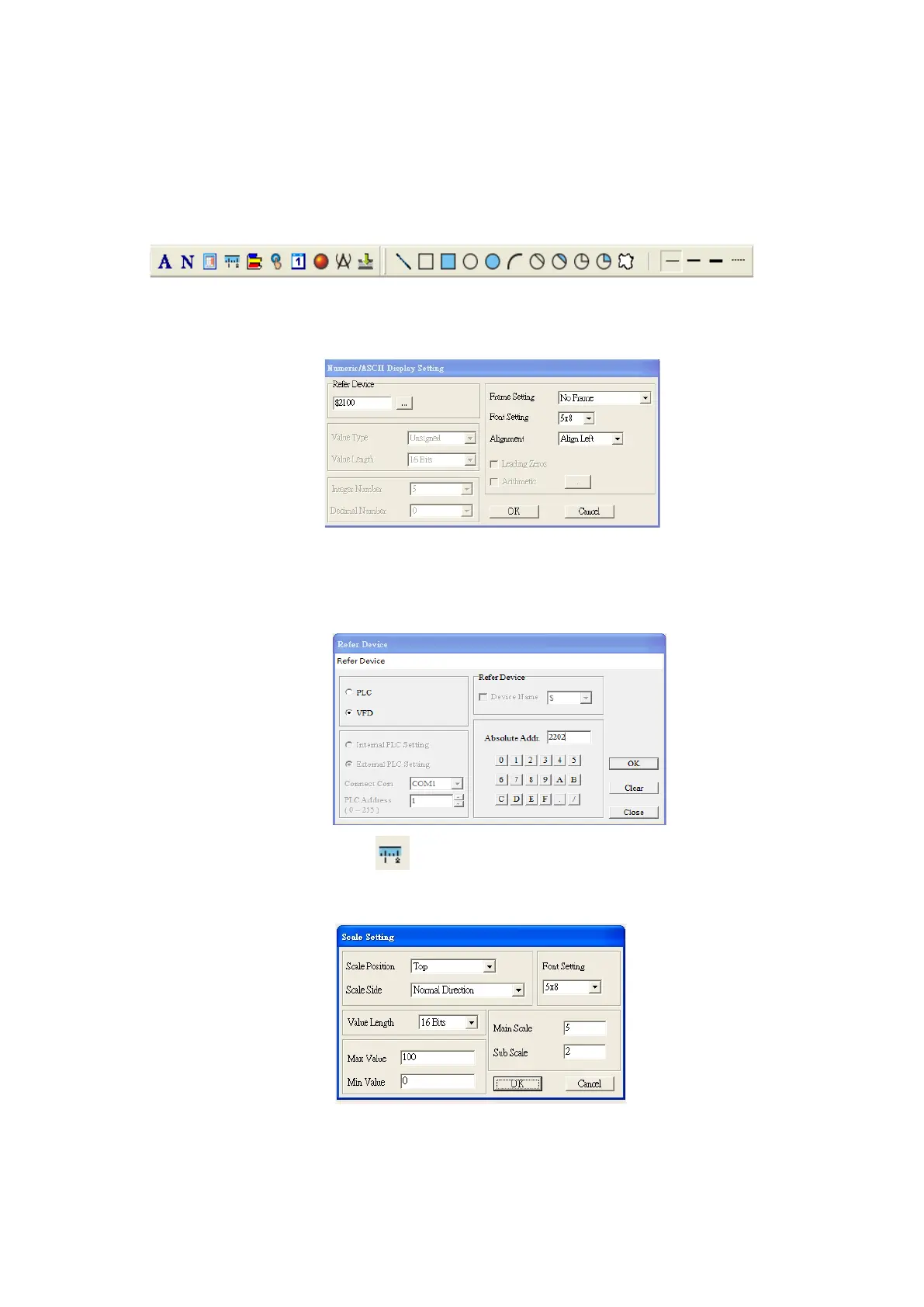 (3) Add a numeric/ASCII display. On the toolbar, click the Numeric/ASCII button. In the page, double-click
