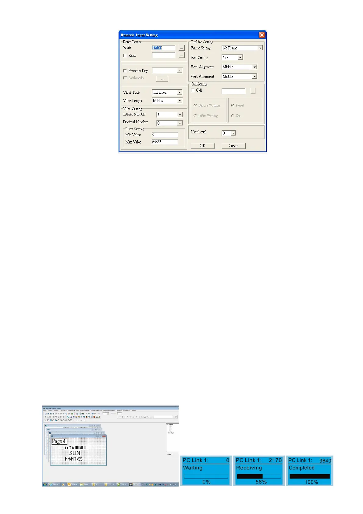 Then press ENTER on the keypad. The screen displays “Waiting”. In TPEditor, choose a page that you