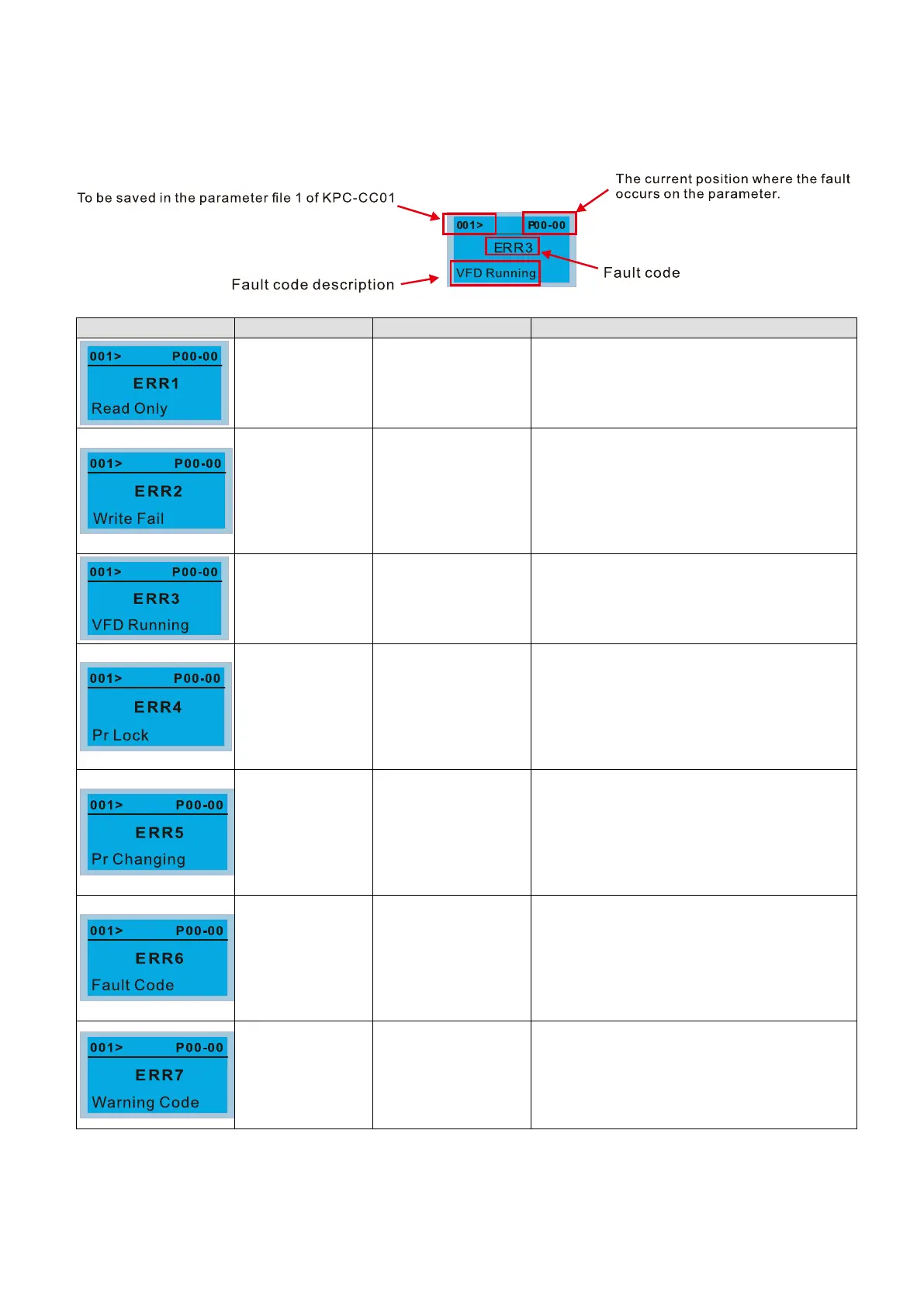 These faults occur when KPC-CC01 cannot perform the command after clicking the ENTER key in the