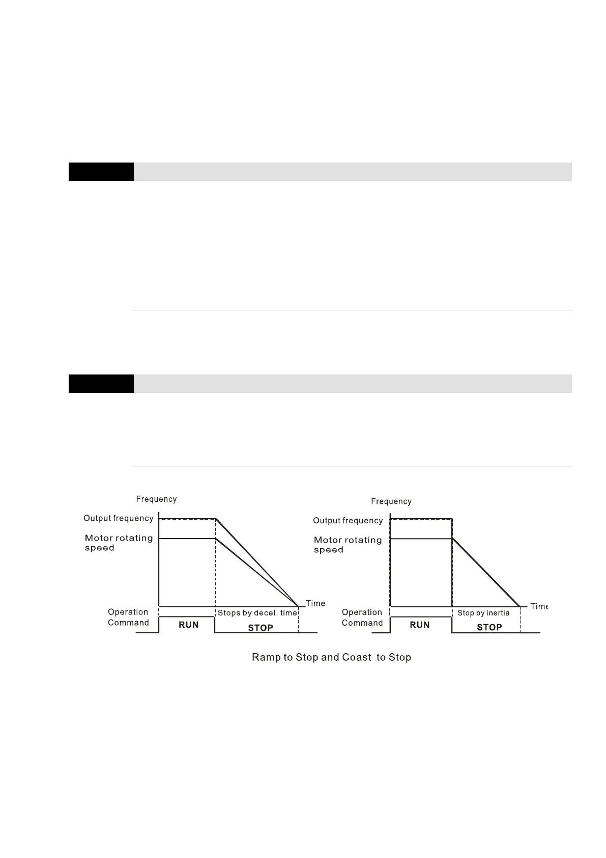 2. Coast to stop: the AC motor drive stops output immediately, and the motor coasts to stop