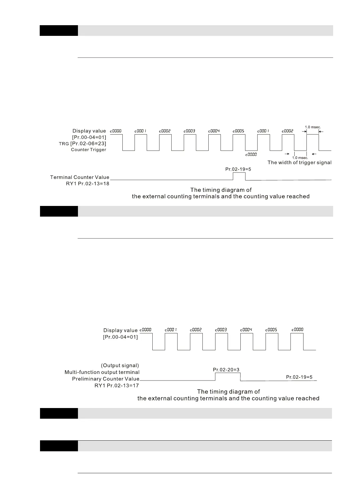 terminal (set Pr.02-04 to 23). When counting is completed, the specified multi-function output