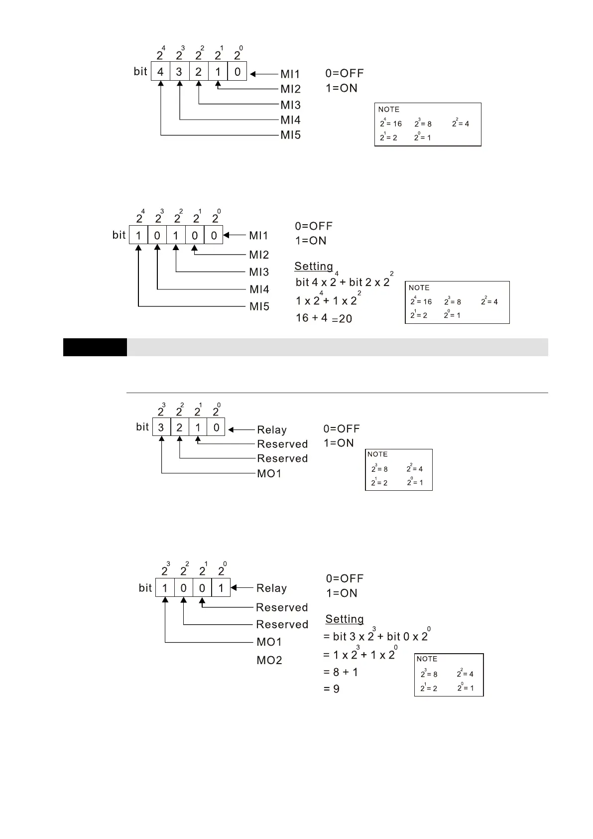 When Pr.02-50 displays 0014h (hex) (that is, the value is 52 (decimal) and 10100 (binary)), it