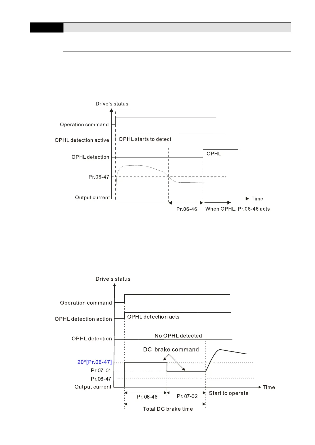 Status 2-1: Pr.06-48 ≠ 0, Pr.07-02 ≠ 0 (No OPHL detected before operation)