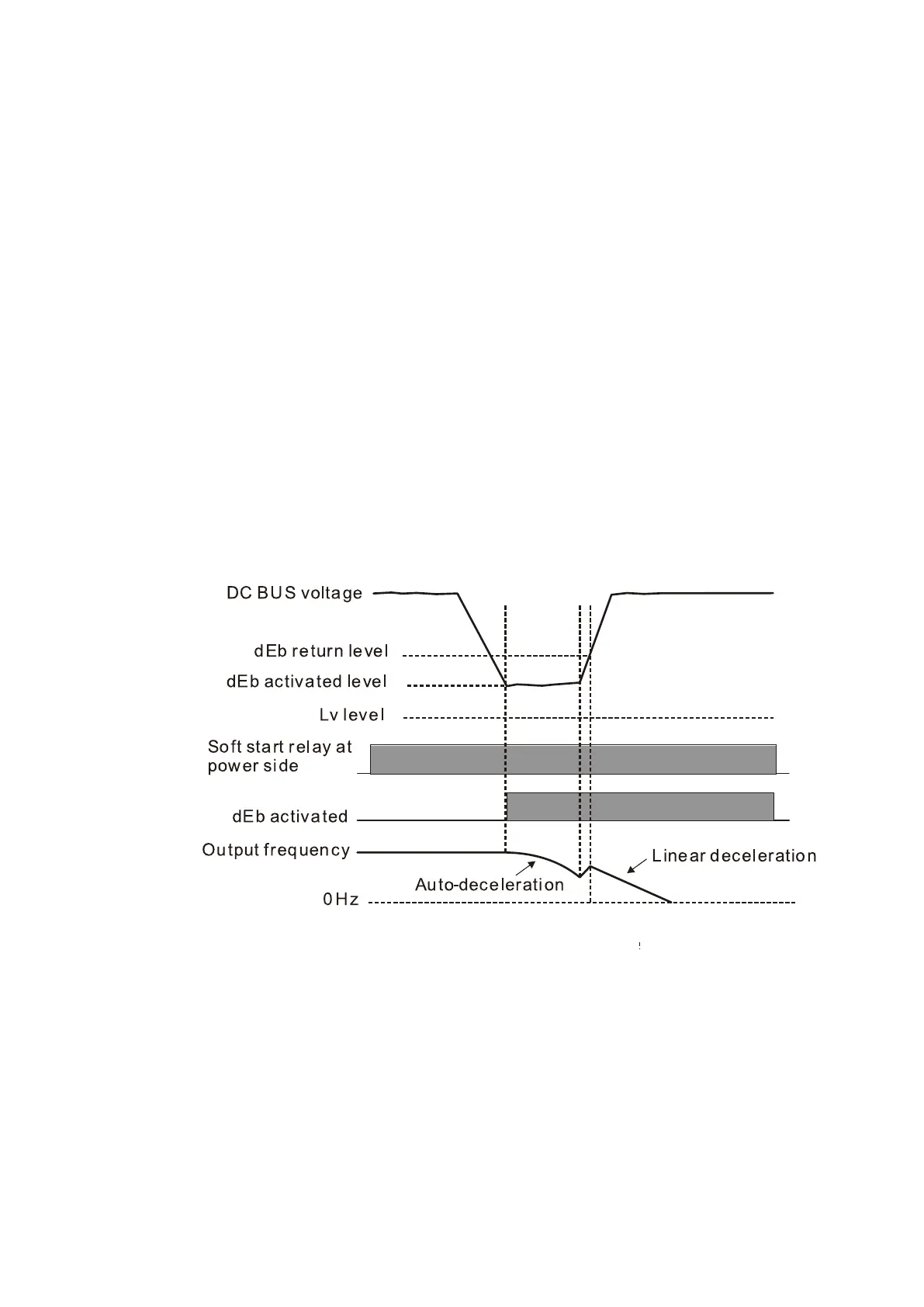 When the DC voltage drops below the dEb setting level, the dEb function starts to work (soft start