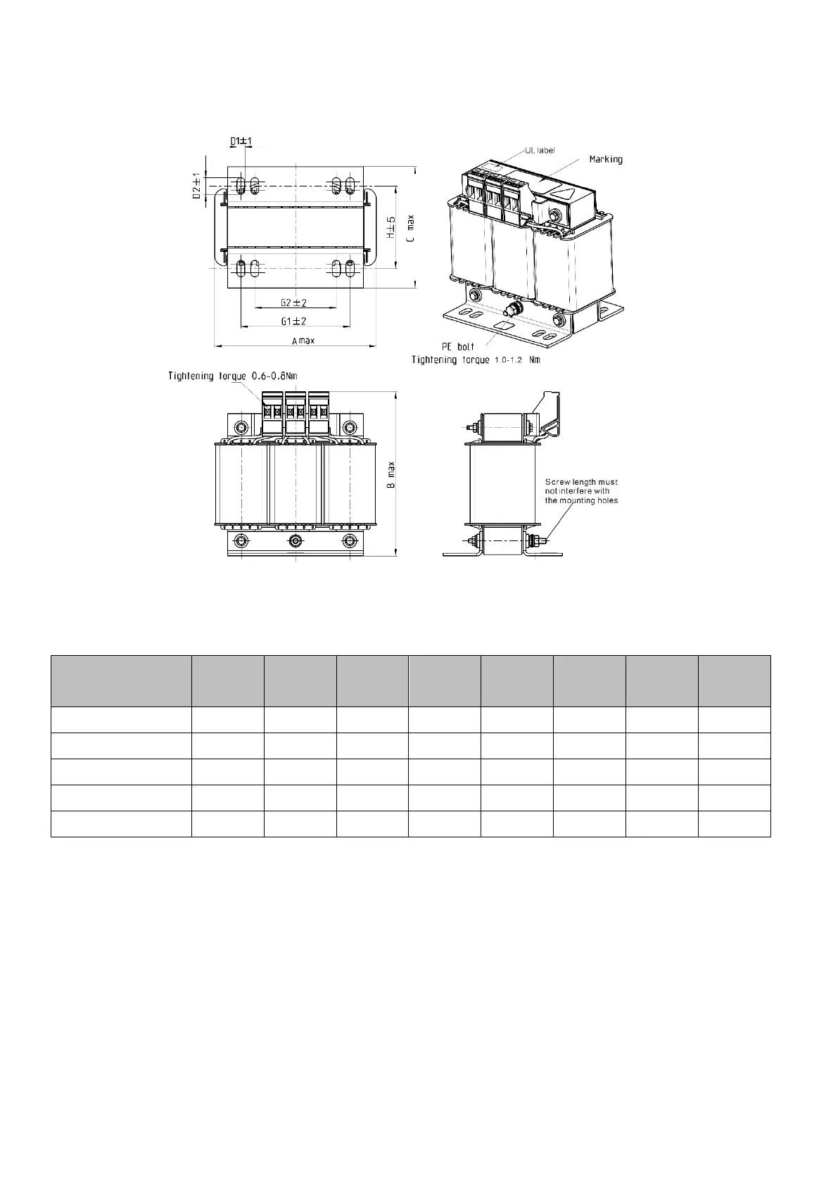 AC output reactor dimension and specifications: