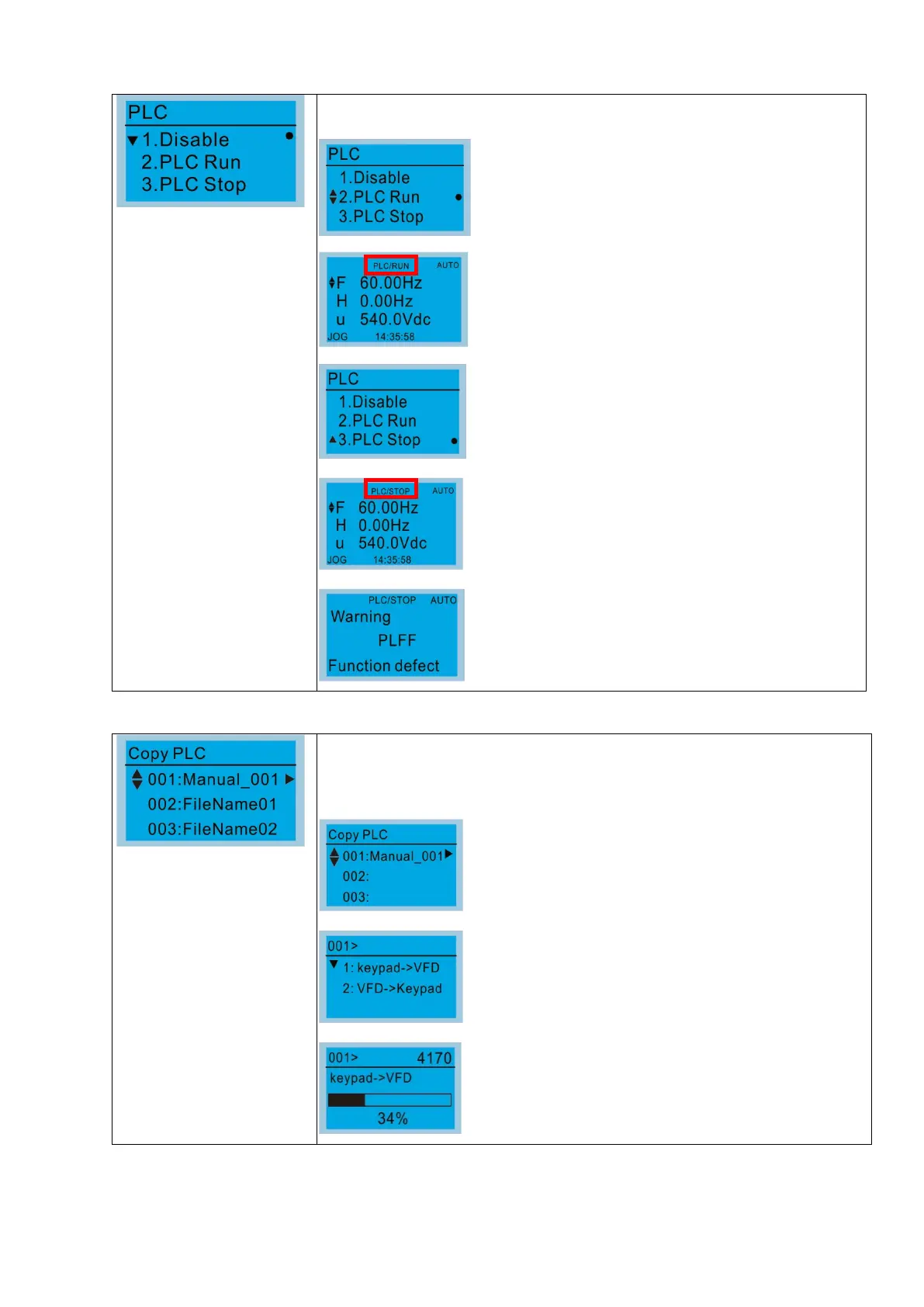 When activating and stopping the PLC function (choosing 2: PLC Run or 3: