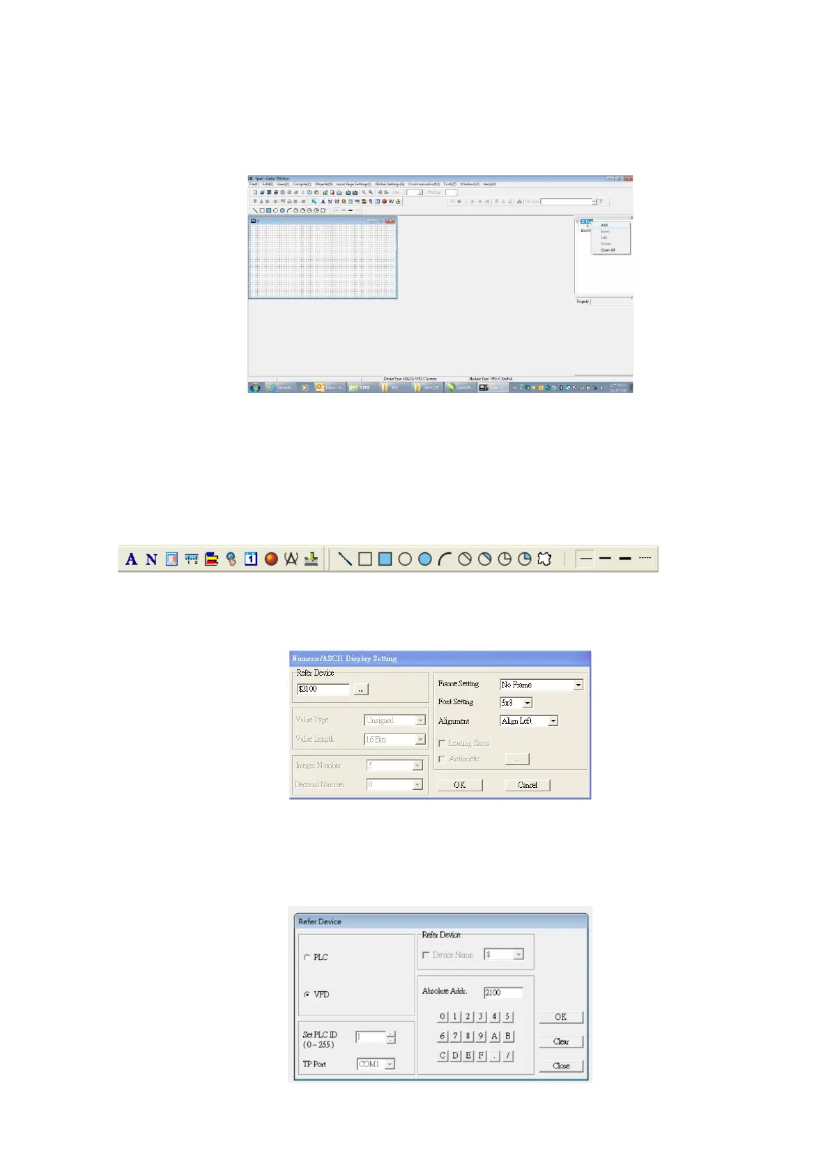 Click […]. In the Refer Device dialog box, choose the VFD communication port that you need. If you want