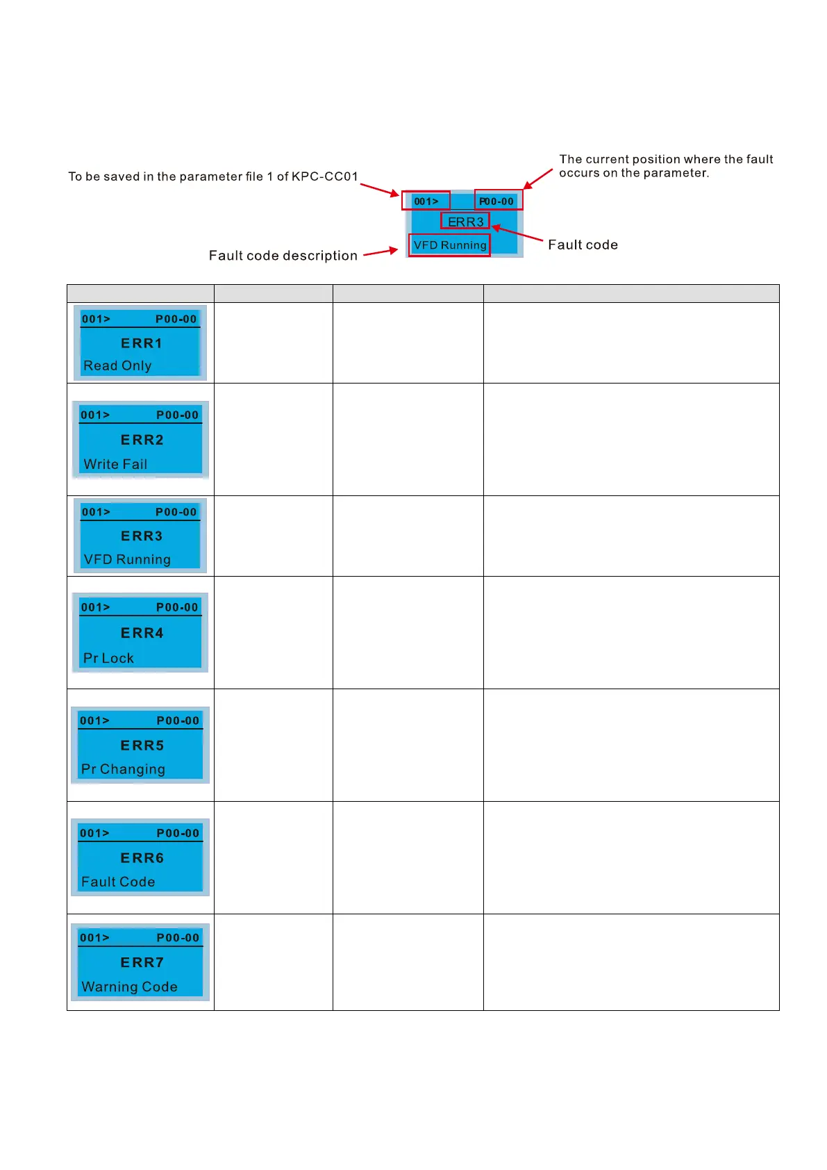 These faults occur when KPC-CC01 cannot perform the command after clicking the ENTER key in the