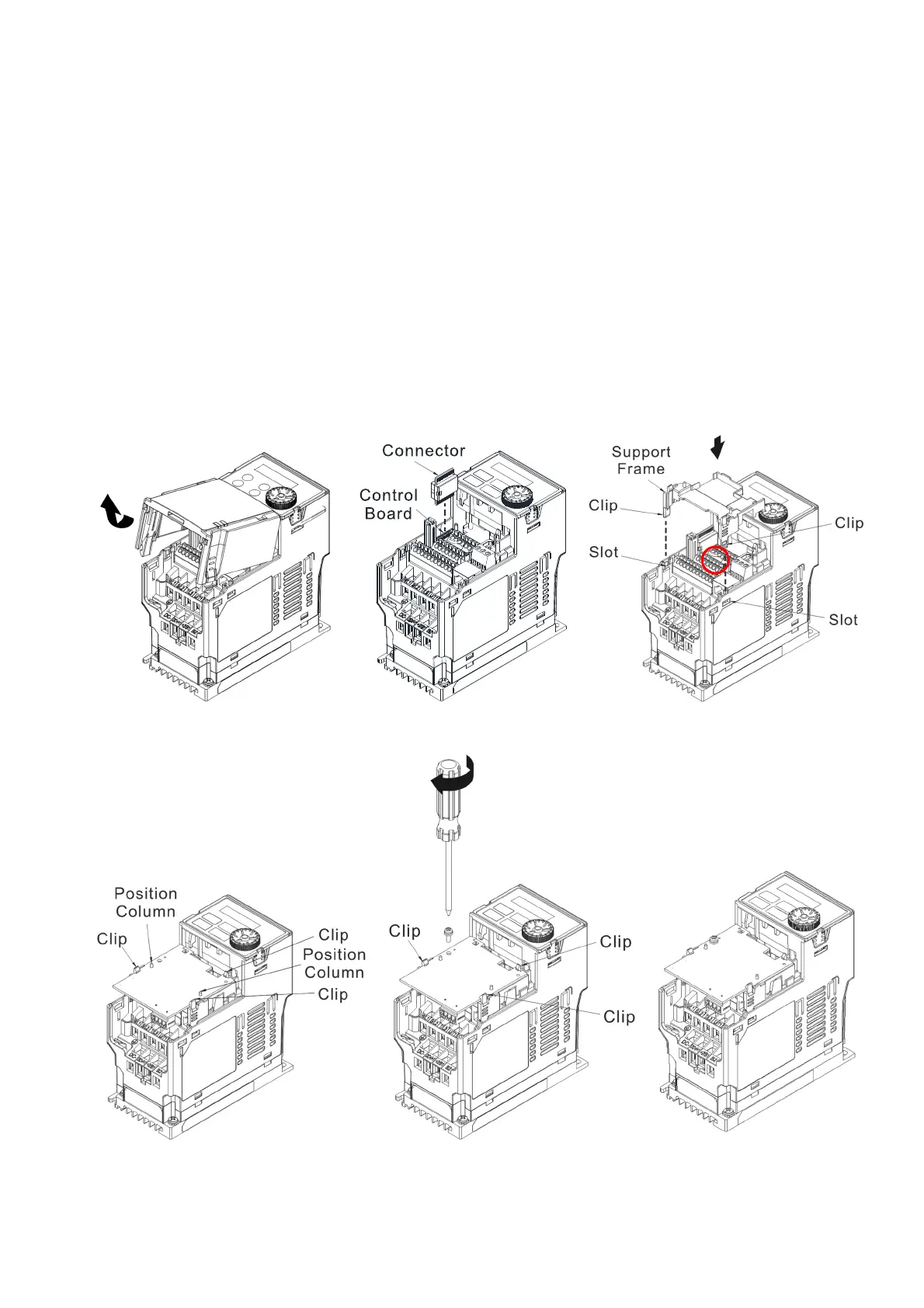 4. Assembling the option card: As shown in the Figure 8-18, have the terminal block of the option facing
