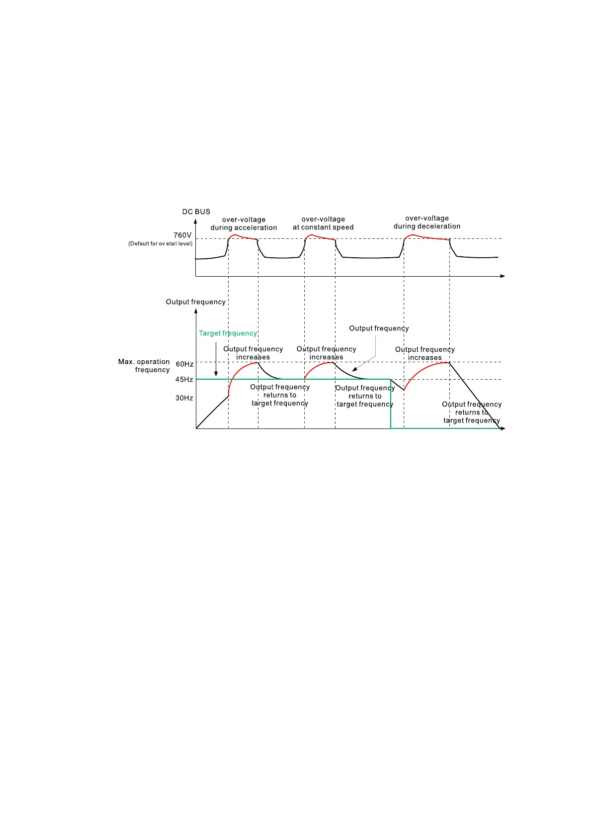 bus voltage is lower than the stall prevention level. If the DC bus voltage is still higher than the