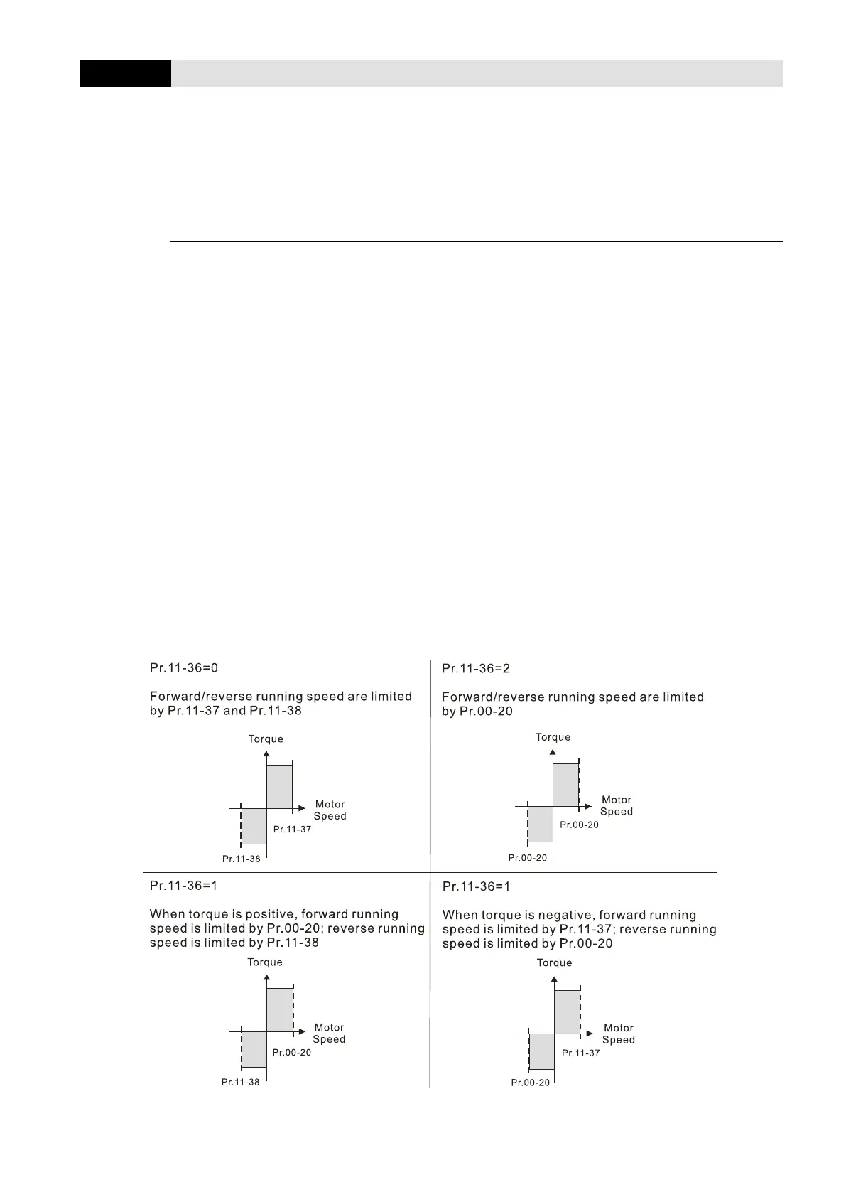 When the torque command is negative, the forward speed limit is Pr.11-37 and the reverse
