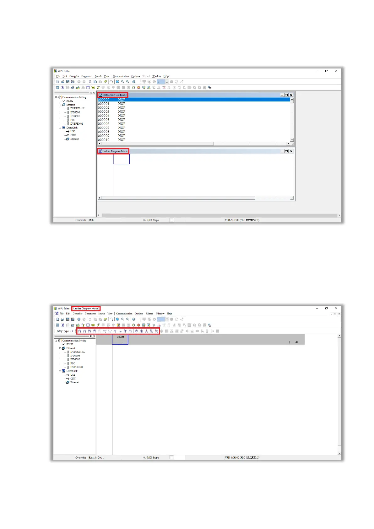 In the ladder diagram mode, you use the buttons on the function icon row on the toolbar.