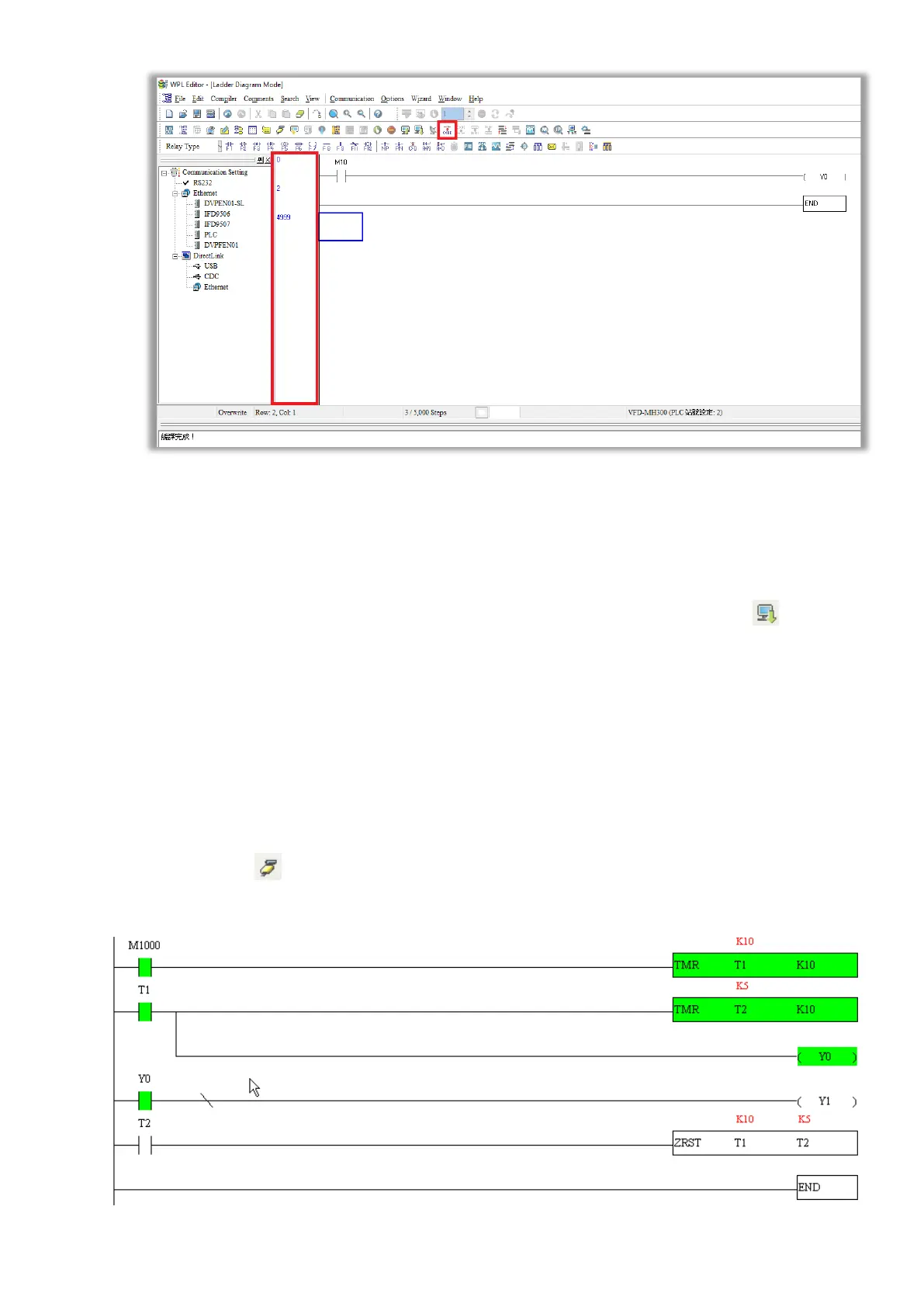 After you compile your program, download it to the device. Click the Download button . WPLSoft