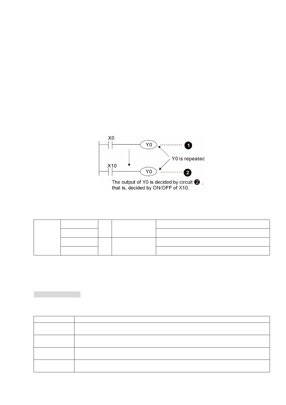 use the number of output coil Y only once in a program; otherwise the output state when the PLC