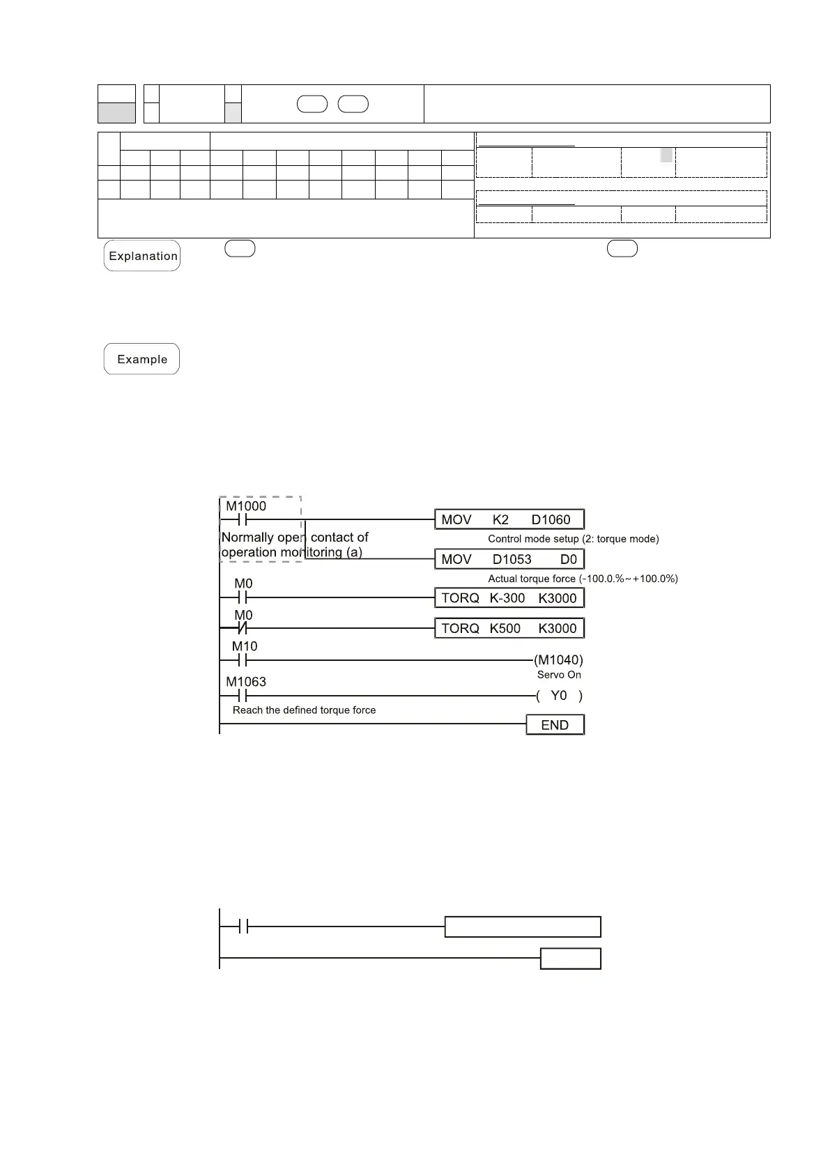 M1040: Control Servo On/Servo Off. M1063: set torque attained. D1060 is the mode