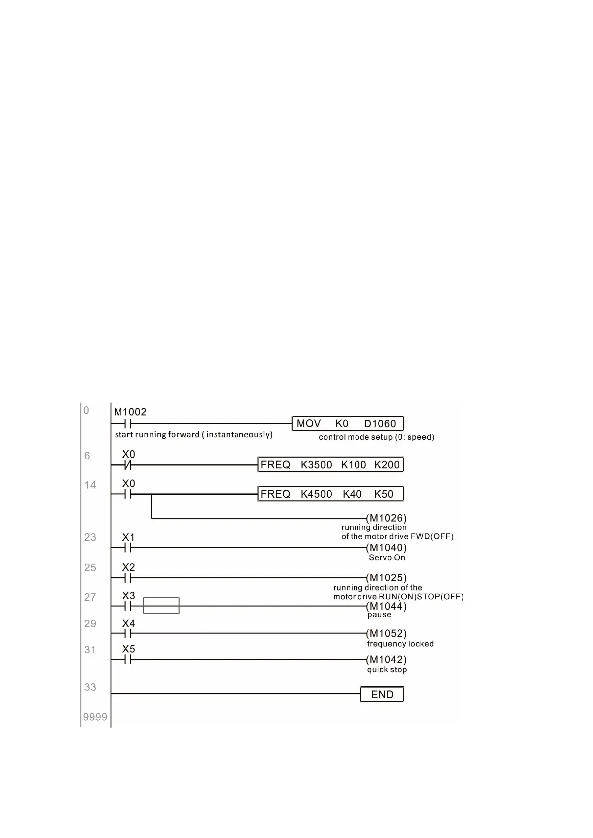 4. Setting M1025 = 1, the drive Frequency command now jumps to the frequency designated by