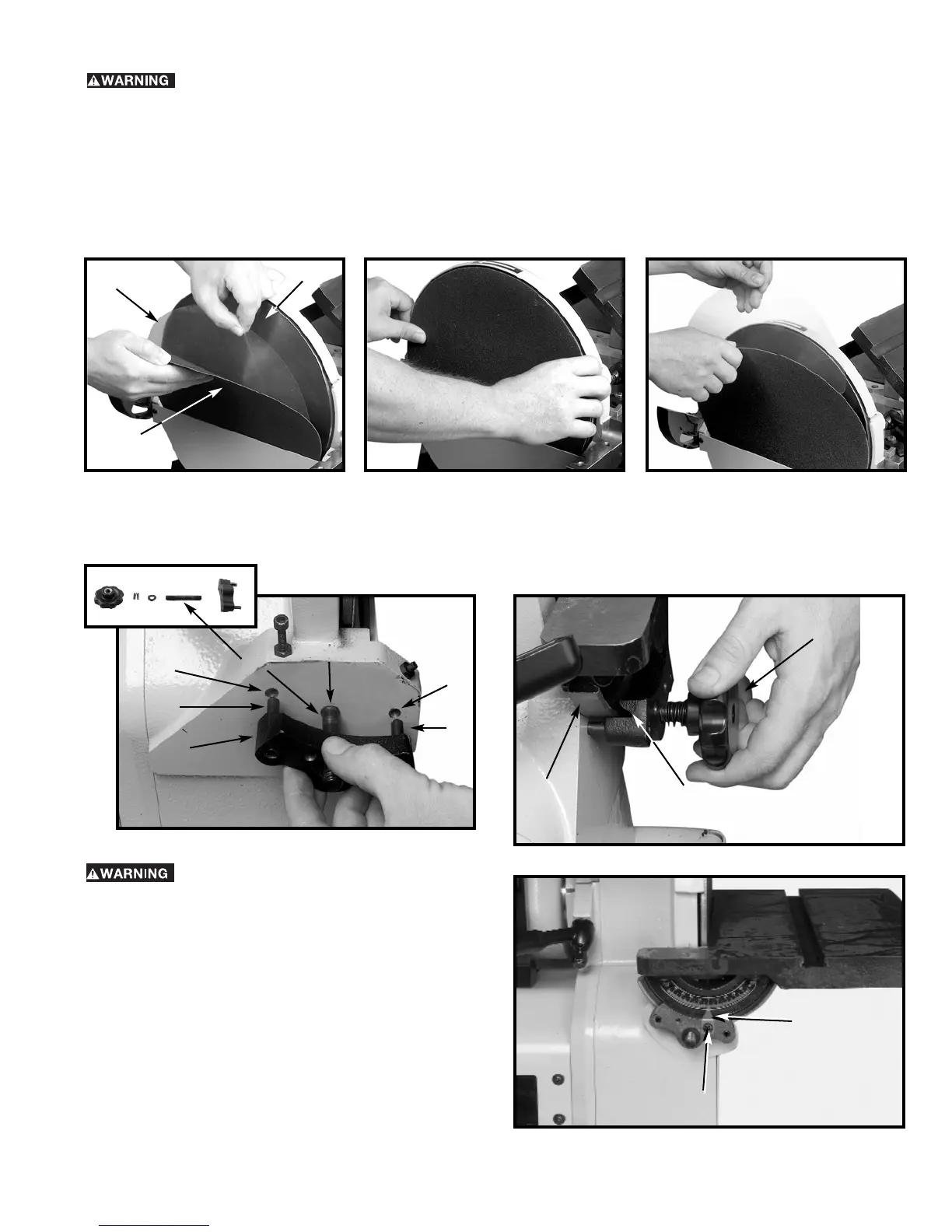 Securely position the sanding disc on the disc assembly prior to applying power to the tool.