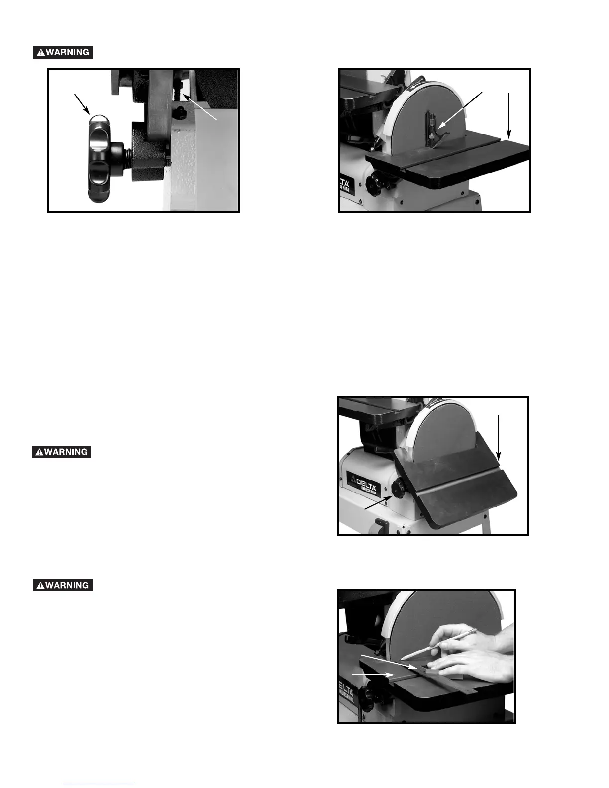 ADJUSTING SANDING DISC TABLE 90 DEGREES TO DISC