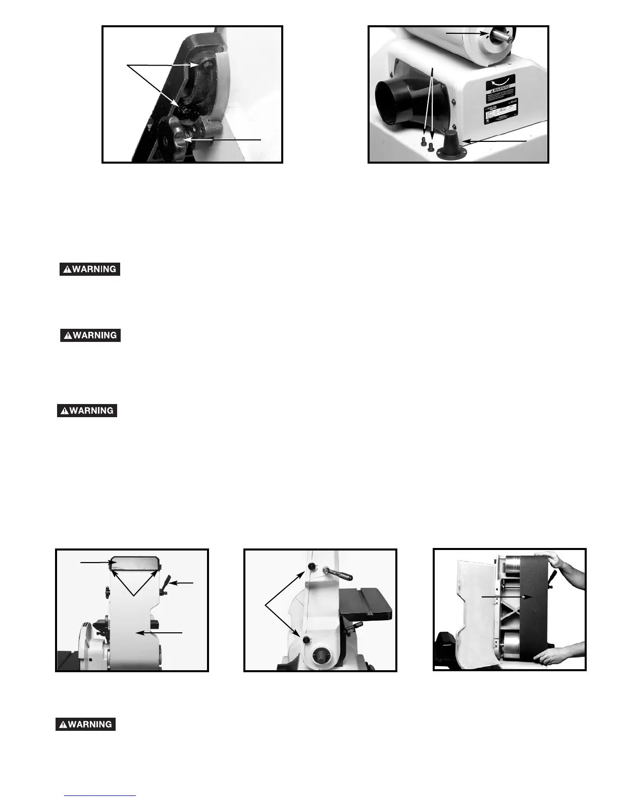 7. Connect the power source to the sander and check for proper belt tracking.