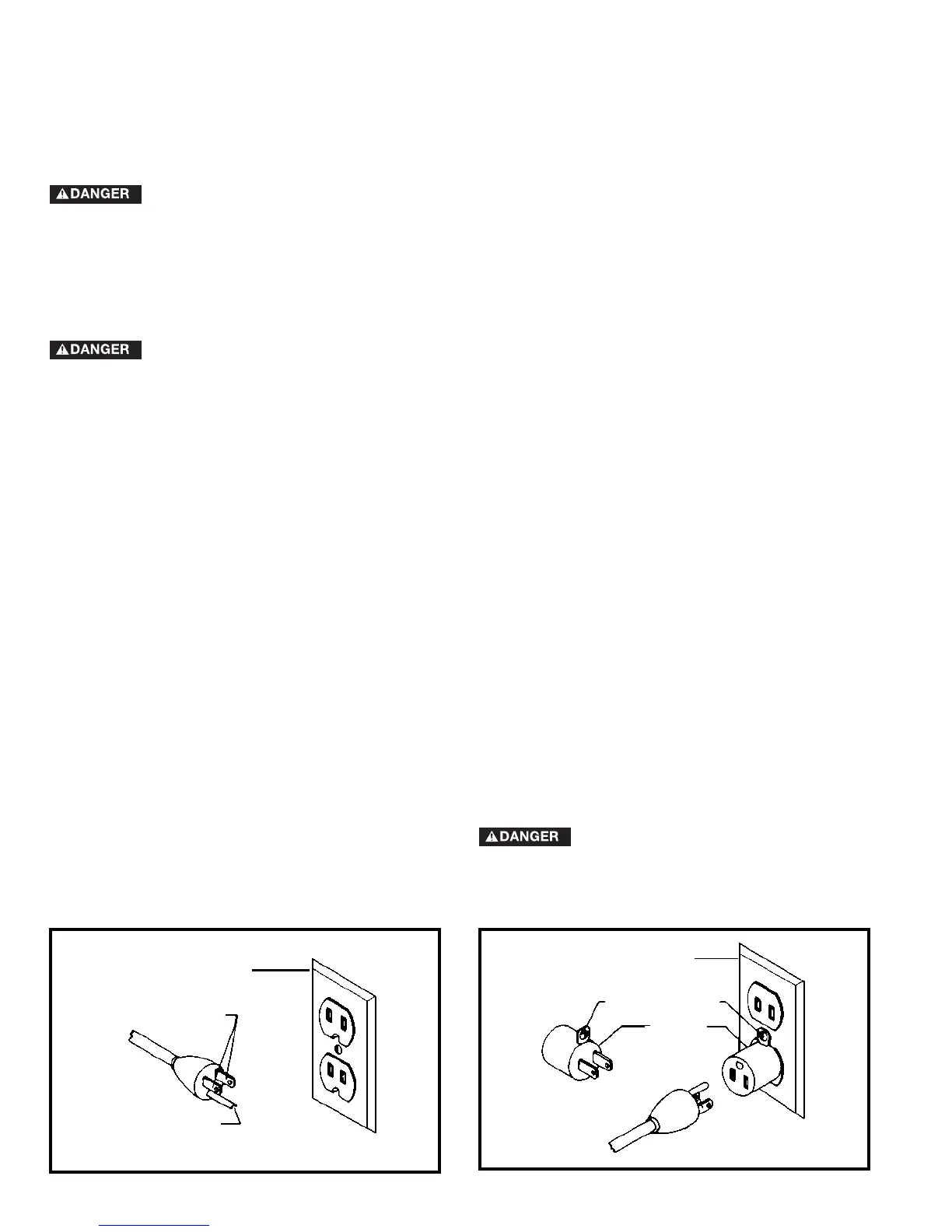 prong grounding type plugs and matching receptacle which will accept the machine’s plug. Before connecting the