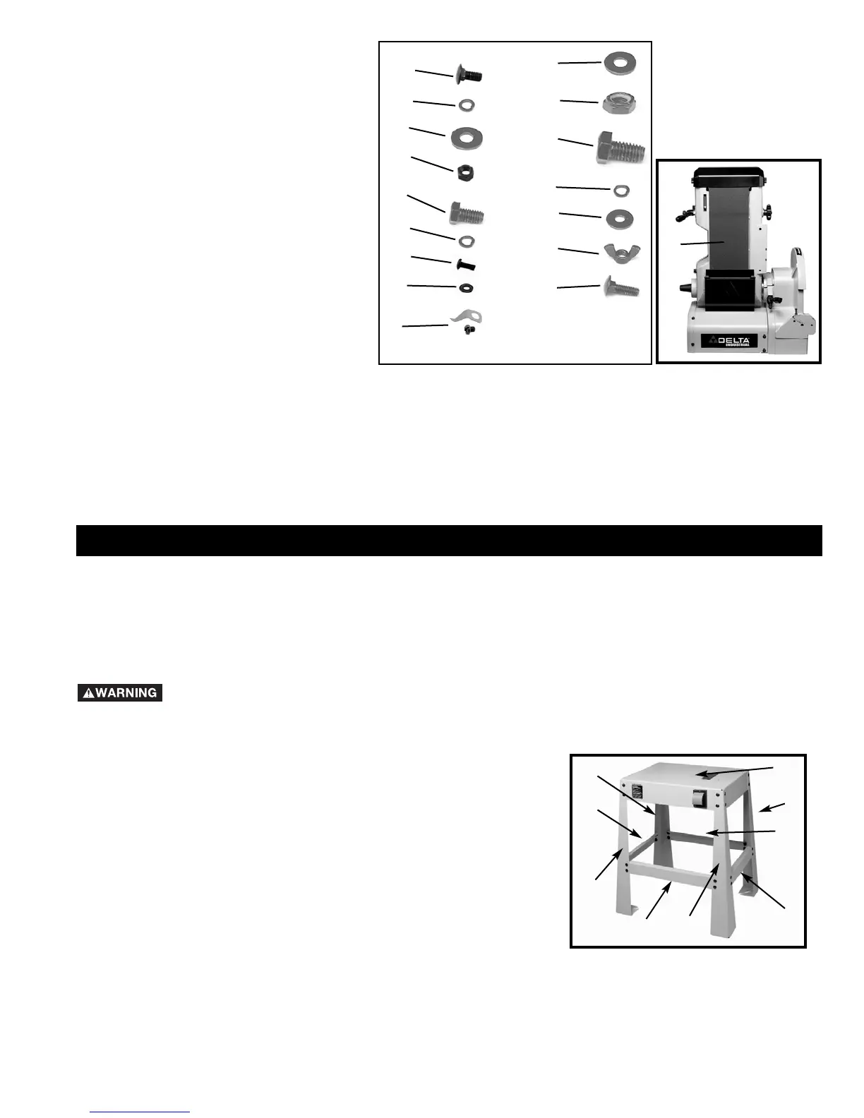 bolts, flat washers, lockwashers, and hex nuts. NOTE: Hand