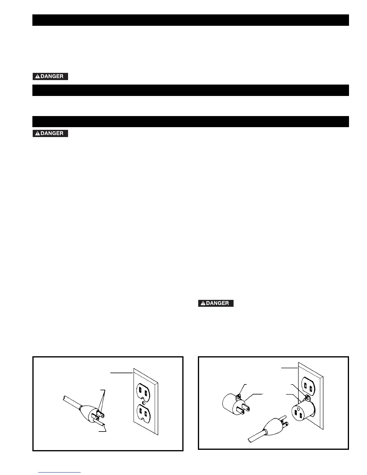 prong grounding type plugs and matching receptacle which will accept the machine’s plug. Before connecting the