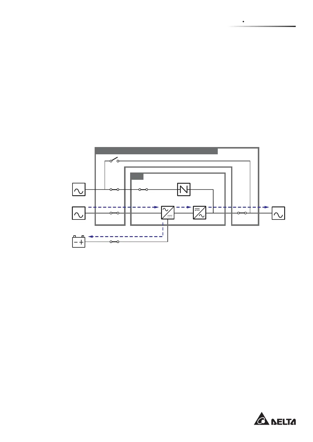 Please see Figure 3-18 for online mode diagram. During online mode, the UPS’s tri-color