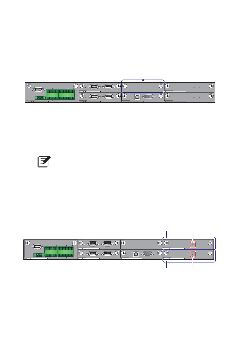 (Figure 4-13: Location of Auxiliary Power Cards and their LED Indicators)