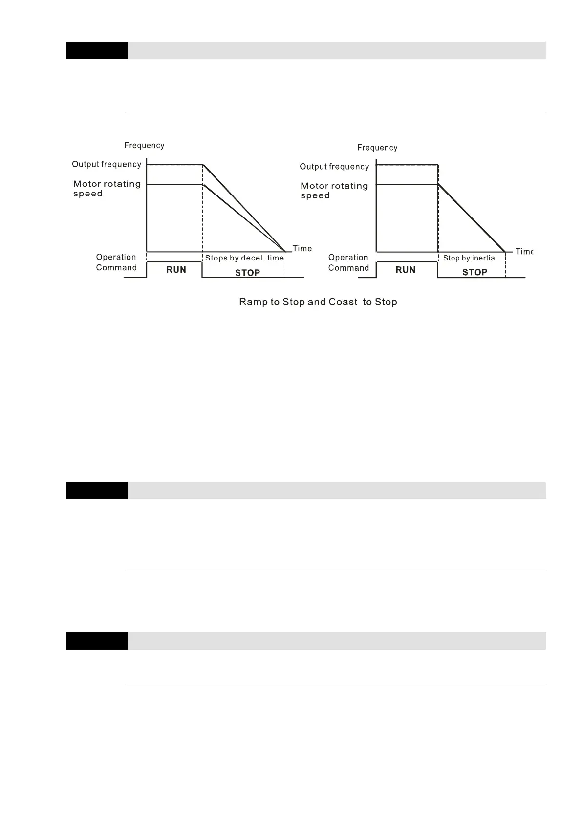 1. Ramp to stop: According to the set deceleration time, the AC motor drive decelerates to 0