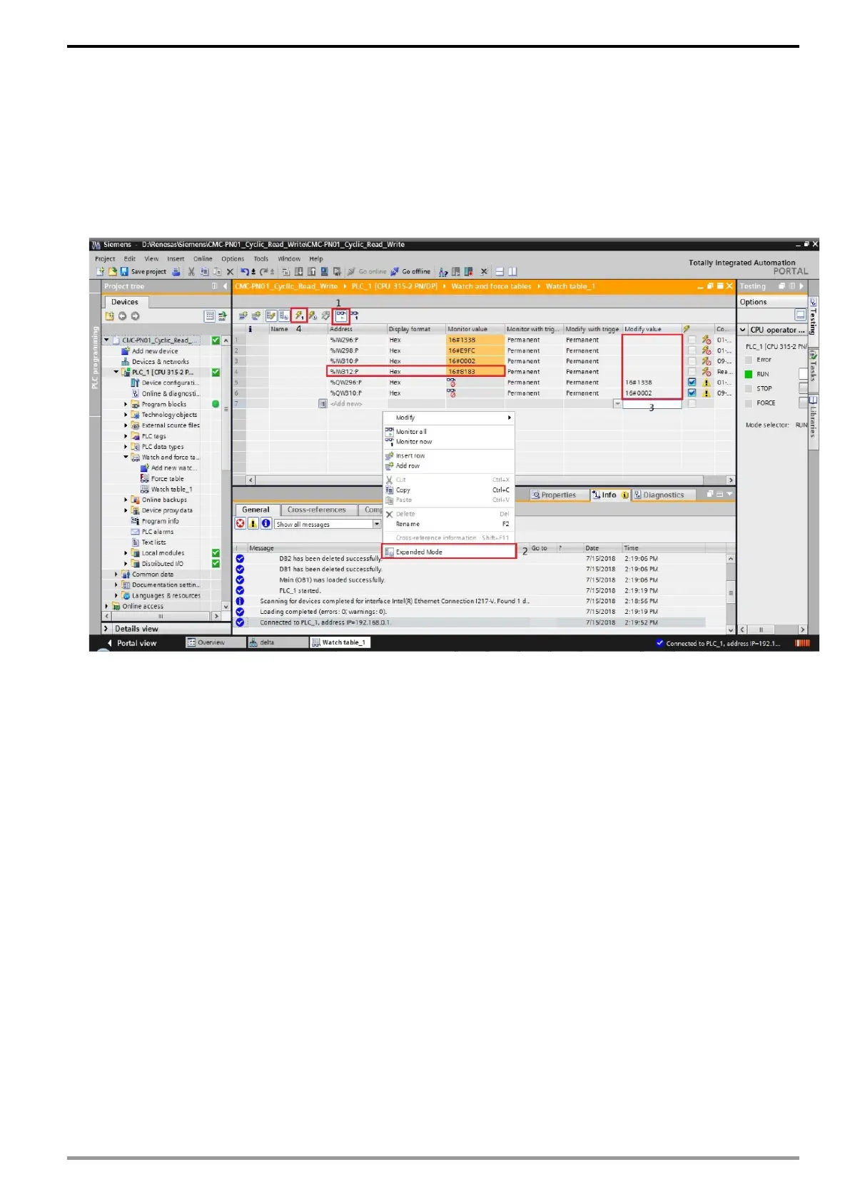writing of the set parameter by using the Watch Table. Refer to the figure below for The Watch