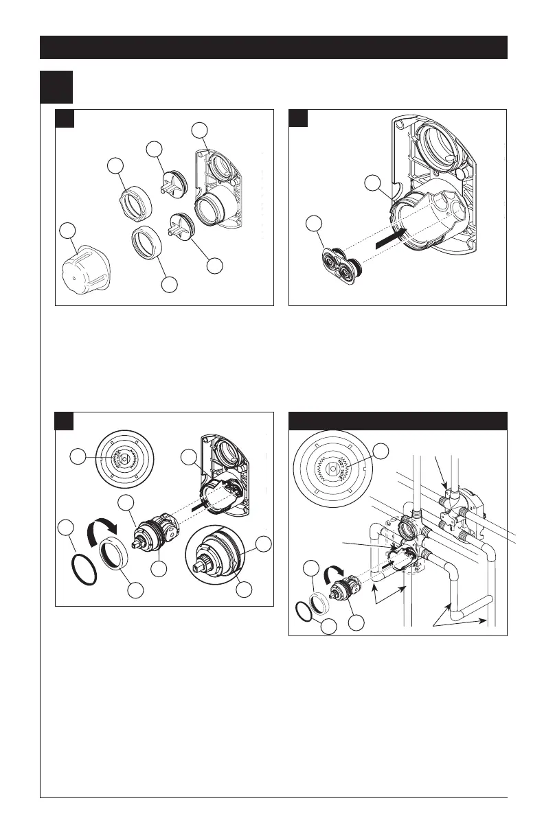 Rotate valve cartridge (1) so “HOT SIDE” (2)