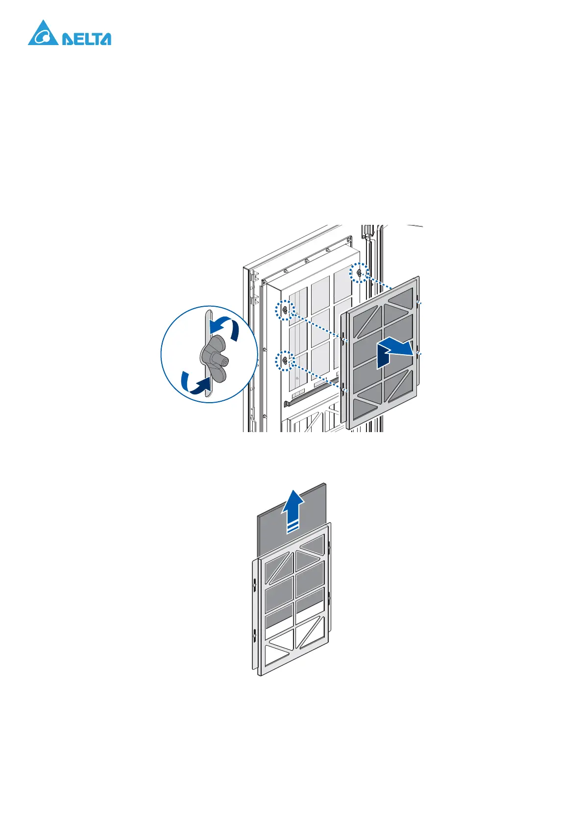 2. Release the butterfly nuts and slide to remove the air filter cage from the rear door.