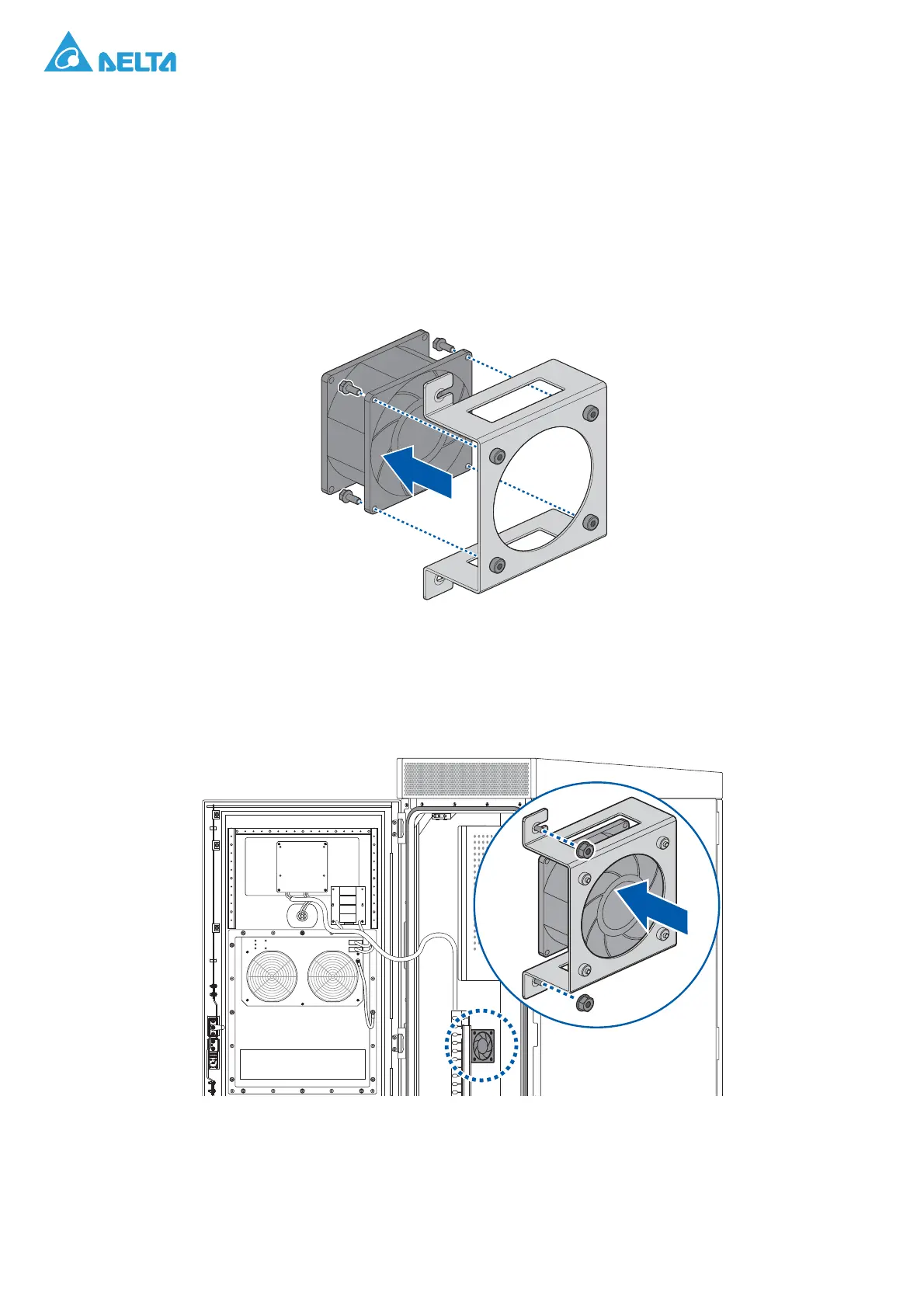 2. Insert the fan module in the bracket making sure that the screw holes are aligned.