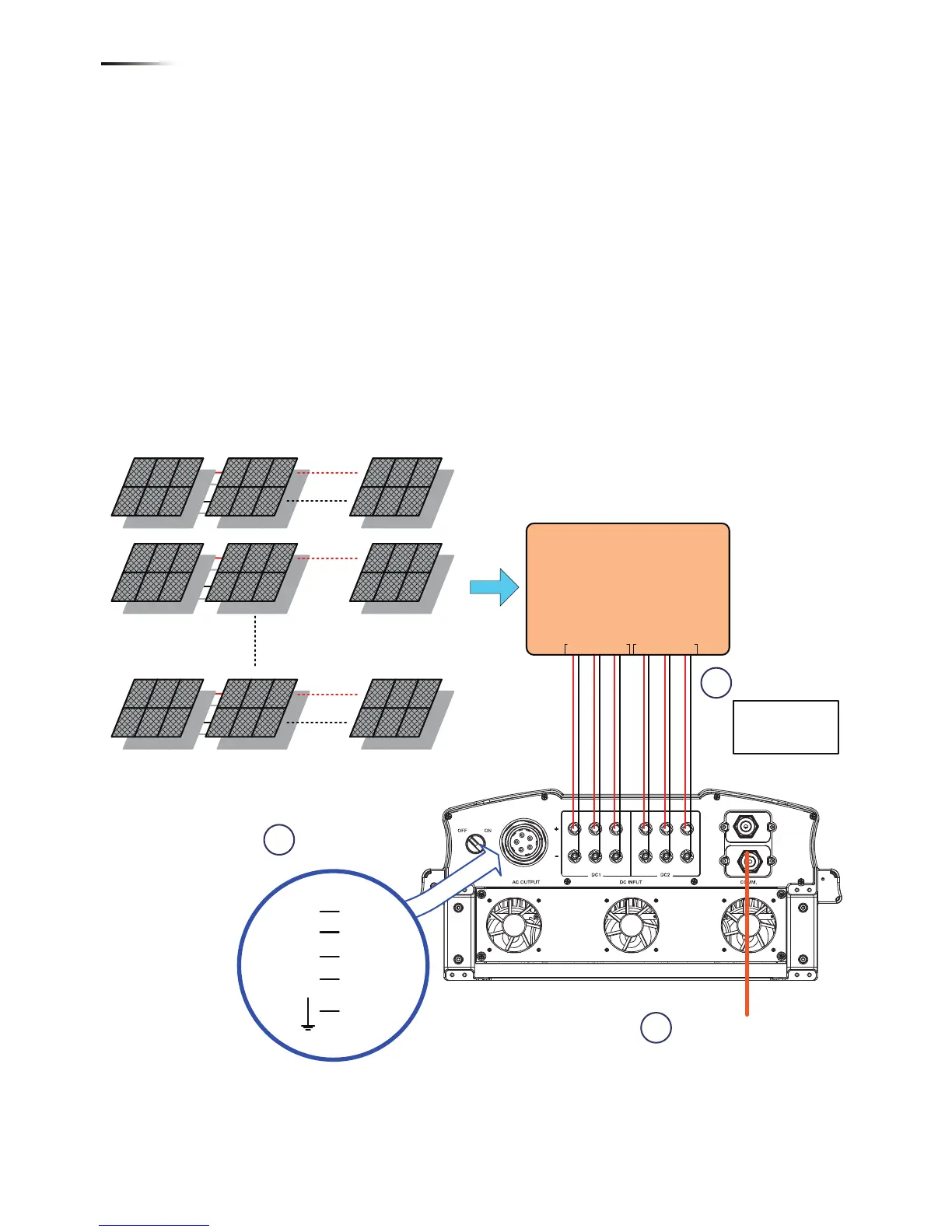 • 當太陽能板不接地時,機子DC端可接受並聯或是獨立連接。