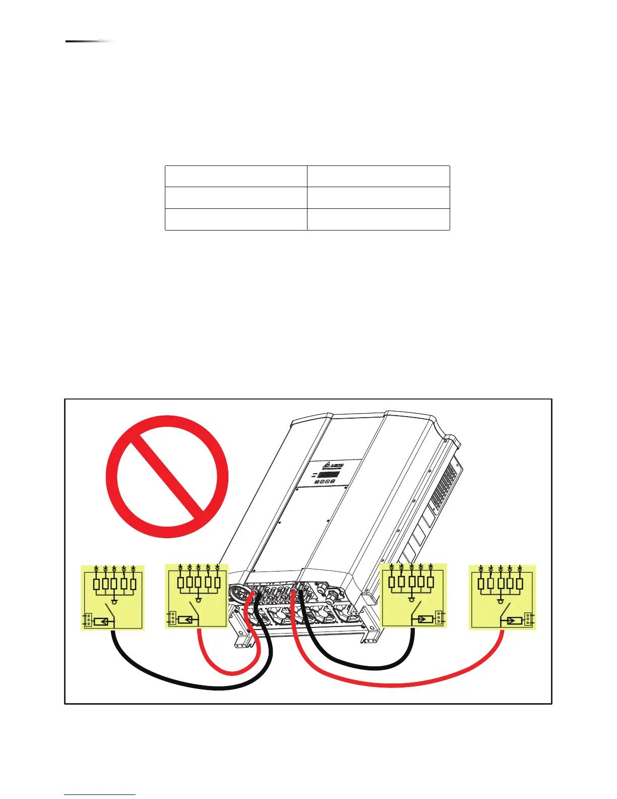 每一直流端子的電流不會超出下表限制值,以避免火災等情事。